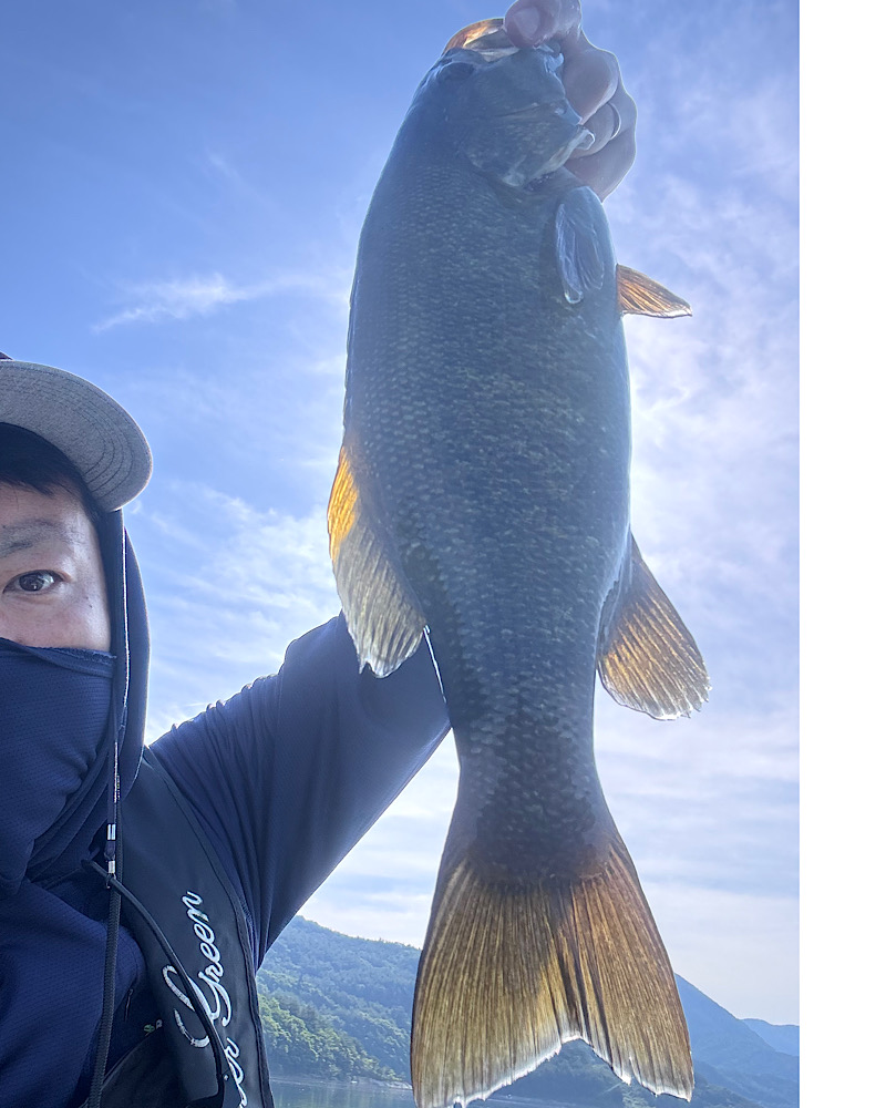 近年ではスモールの人という認識が浸透しておりますが、元々はテキサスやフロッグでシャローバンクを近距離で撃って行くスタイルを得意としています。
