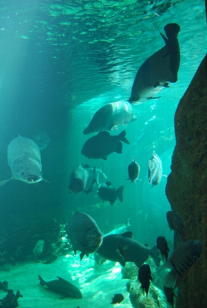 ・・・でも本当の目玉はアマゾン川の魚を展示する水槽で、ドラドやアロワナ、ゼブラタイガー、ピラニアやレッドテールキャット、ピライーバーからネオンテトラまで水曜スペシャルでも見ているかのような魚たちが目白押しです。