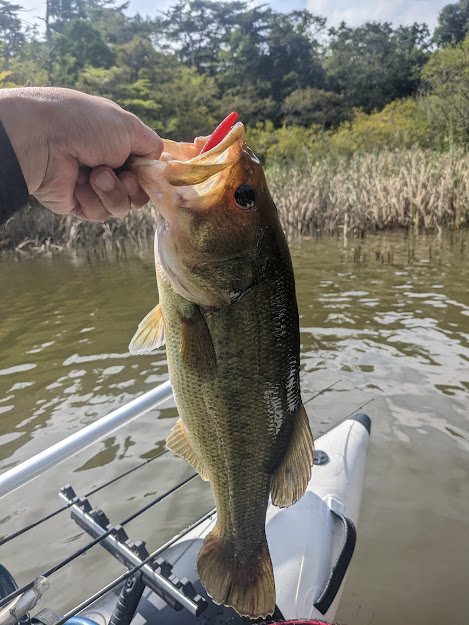 取り敢えず葦から引っぺがして沖へ、コクチとはまた違ったトルクのあるファイトを楽しむ