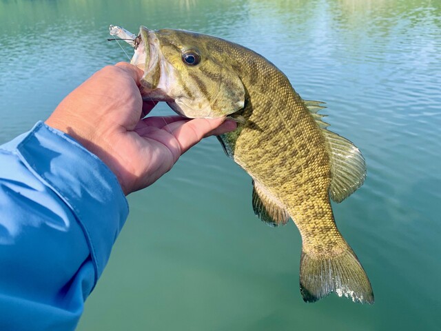 とブッシュ周りで数釣りやって、情報交換。そのあとは、ダムサイト方面にショートトリップ