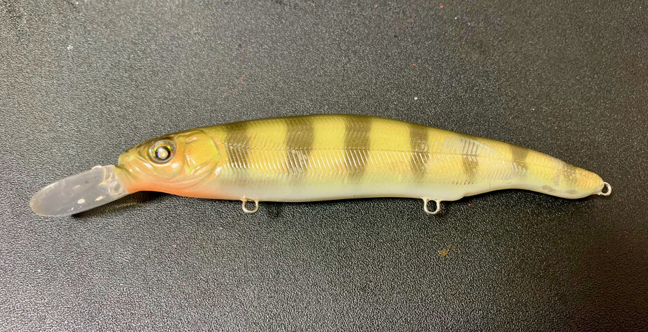 吉報 時はすぎて2021年3月末。バス関連サイトを徘徊していると、NISHINE LURE WORKSの新作ルアー 『 エリー115 』 なるものを発見、開発期間をかけた力作のようです。『ん?どこかで見たなヤツだな・・・』 ガサゴソとプラグの墓場から探し出すと、名無しプラグと瓜二つではありませんか? ちょっと筋彫りなどのディテールが甘い感じですが、どうやらエリー115のプロトらしき物と判断しました。