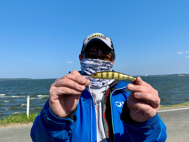 FBI にはいろんな職業の方がいますが、NISHINE LURE WORKSのフィールドテスターの方もいるんです。仮に、びっくり人間氏としておきます。この名無しプラグについて、びっくり人間氏に問い合わせたところ、どうやら数年前に氏が牛堀エリアでレンギョにもってかれた、プロトの一つに違いないとのお返事。あるんですねこんなことが! 氏にとっても、いいバスをキャッチした思い入れの深いプラグの一つとのことでした。