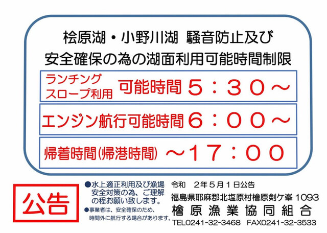さて、ご存知ない方もいらっしゃるようなので情報共有させていただきます。今年から桧原湖の水面利用に関してルールができたようです。皆さんで安全に楽しく釣りをするために遵守してゆきましょう!