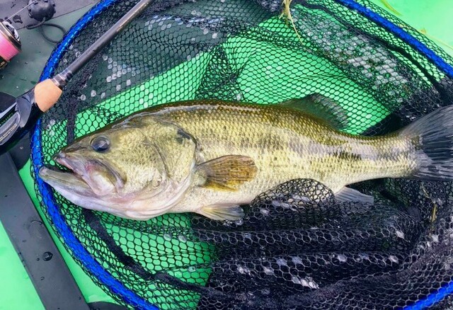 今日はシャローもウイード周りで良かったですし、少し深いところではワカサギの群とリンクするバスも狙ってキャッチすることができました。ネストバスもまだ一部ですが残っていましたので、スポーン、アフター、アフター明け混在のコンディションといったところ。