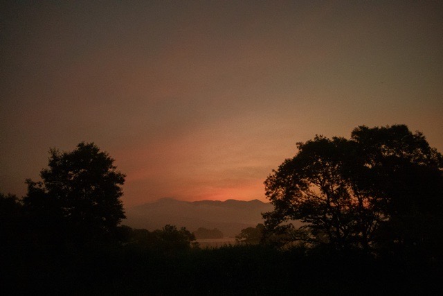 長梅雨の桧原湖で