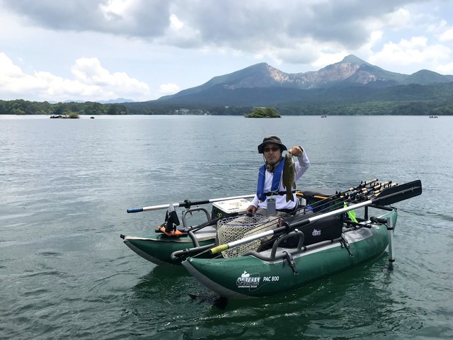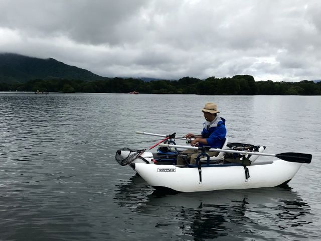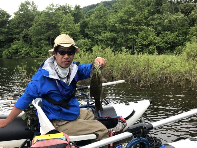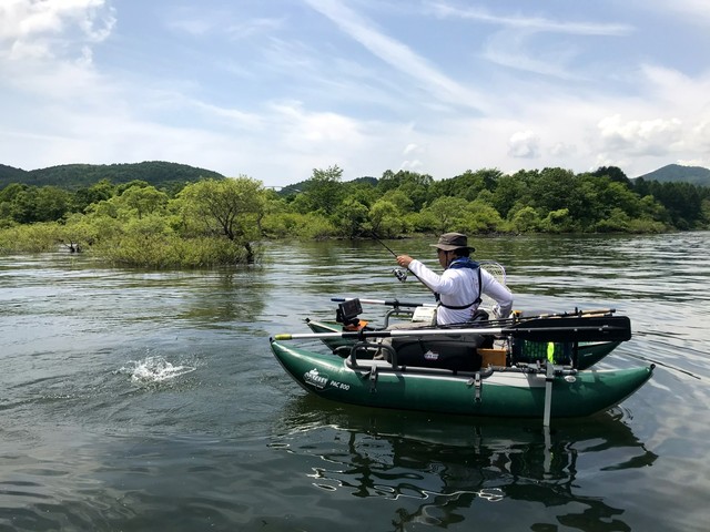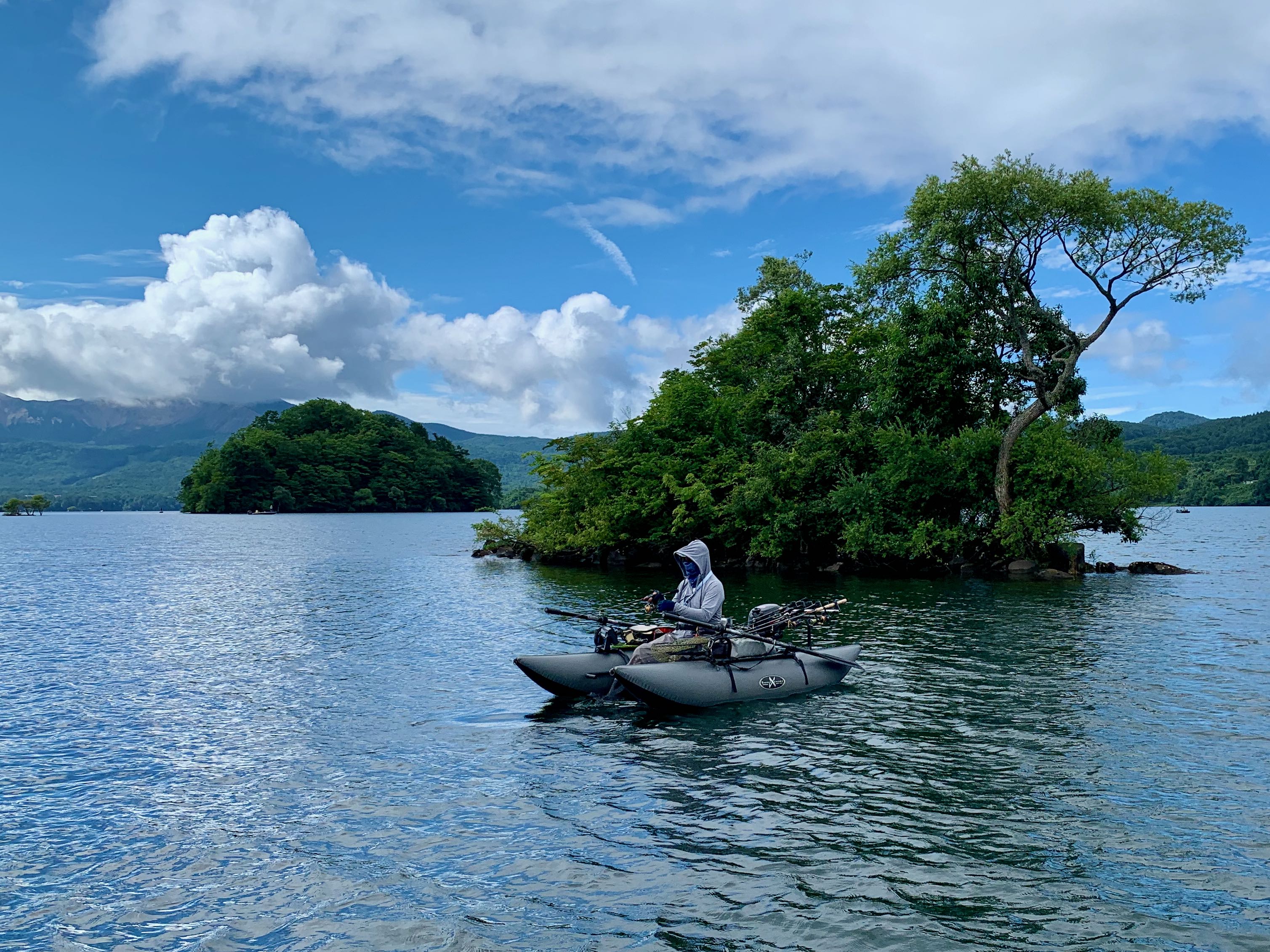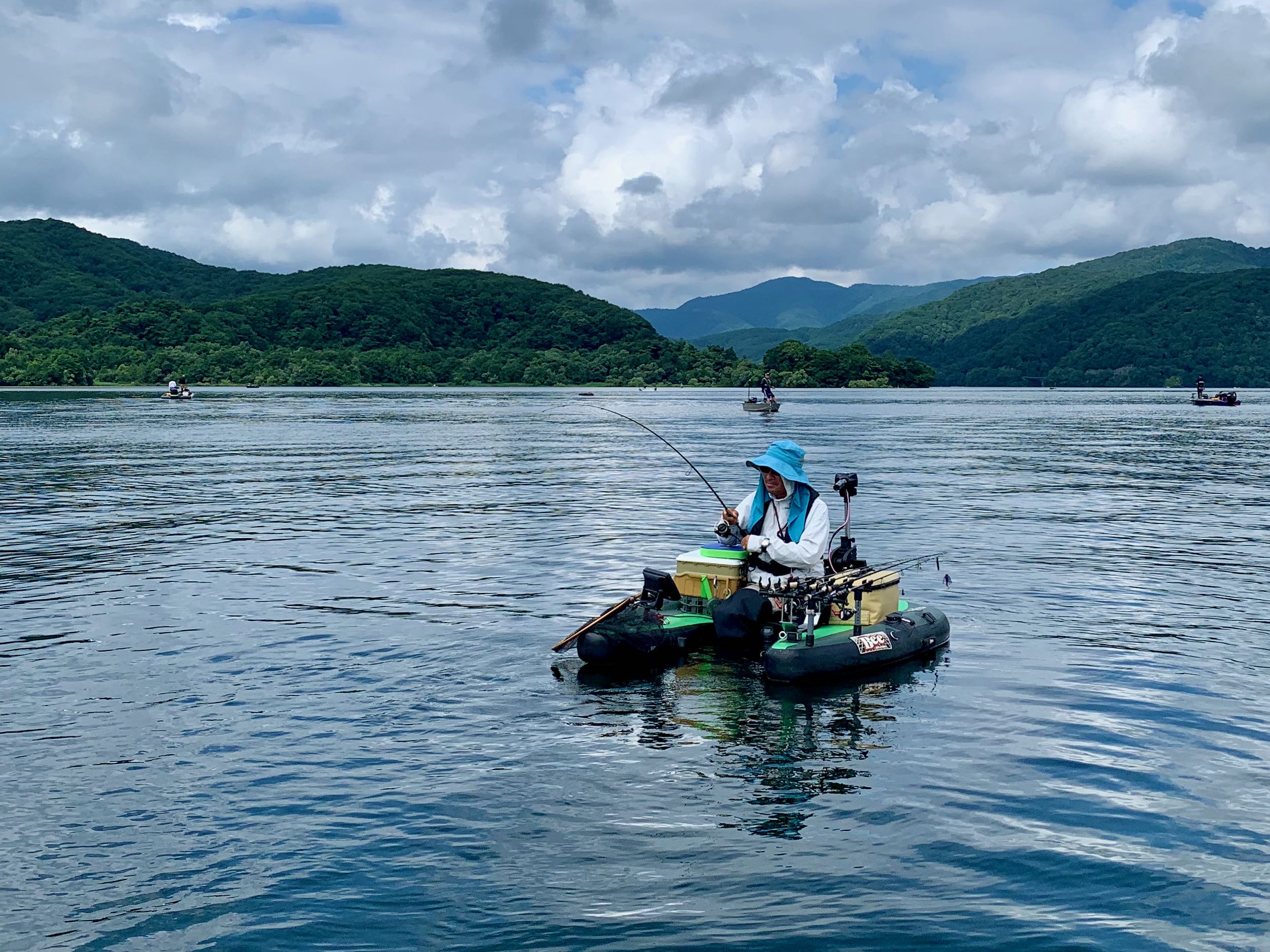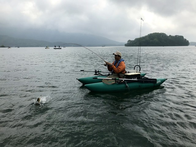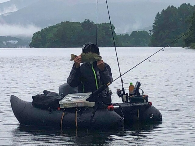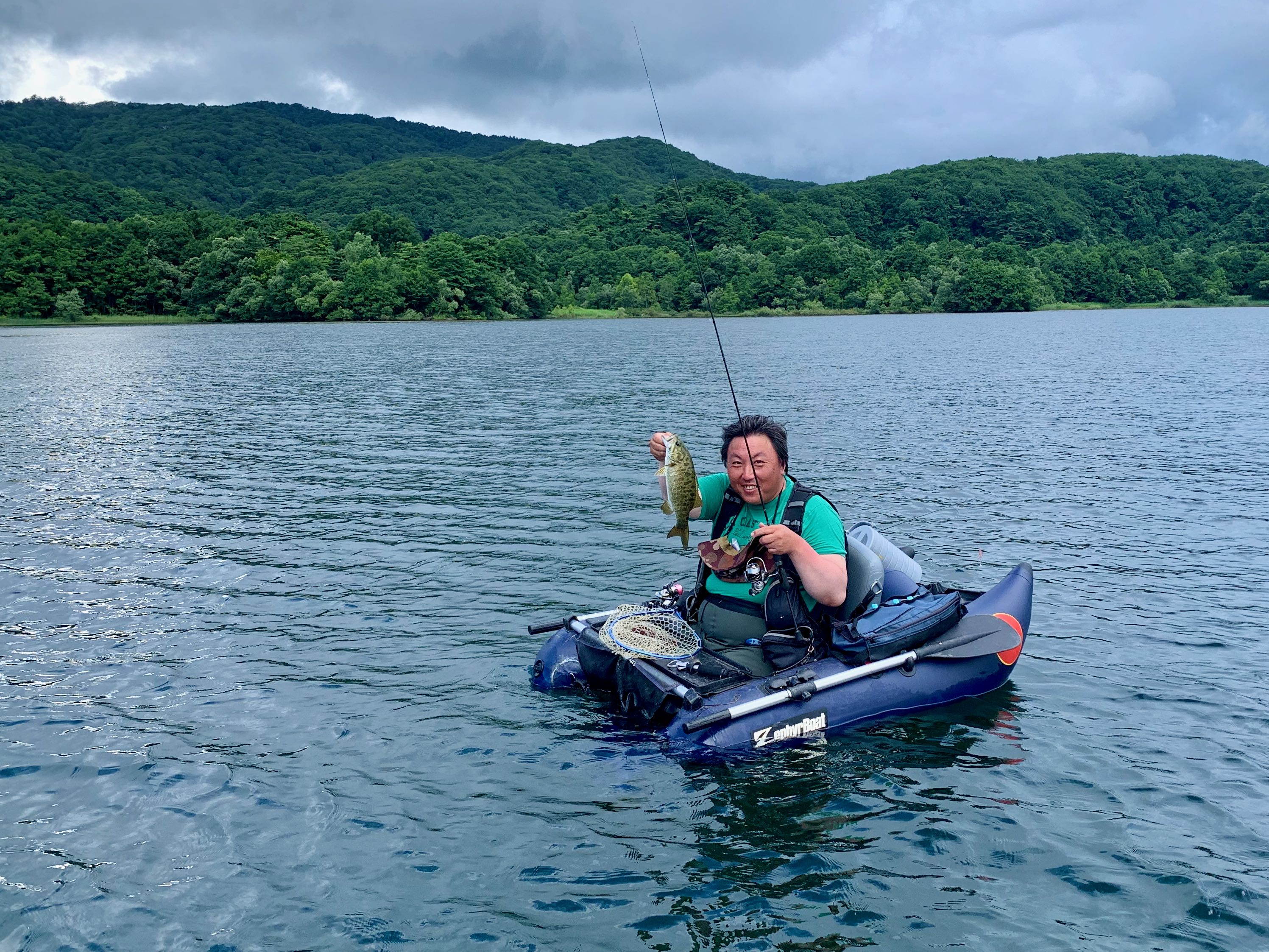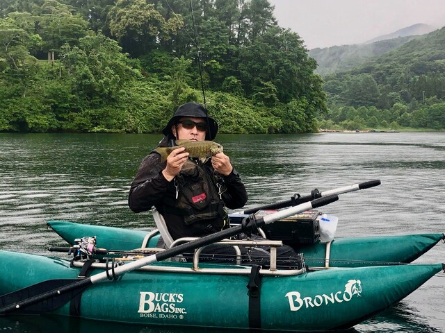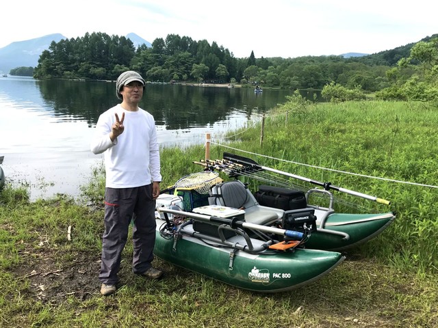 今回、現場で出会ったM氏。毎年涼しい裏磐梯に長期遠征、ついでに小野川湖もハシゴで行く 凄腕の猛者 でした。関西方面では、夏場に涼しく釣りが楽しめるフィールドがほとんどないとのこと、涼しさを満喫していたようです。ここ数年、琵琶湖もさほど釣れなくなってきて、あちこち遠征していたとのことですが、裏磐梯がお気に入りようです。なんと現在ポンツーン購入検討中のこと。FBIはあなたをお待ちしています❤️。