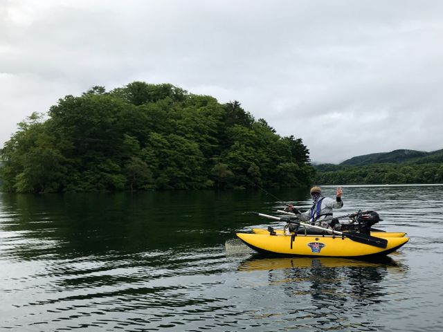 こんにちは菅谷です。猛暑日の続く関東を離れ、海の日の絡む3連休に福島県は桧原湖に1泊2日の釣り合宿に行ってきました。 今回の釣り合宿の参加者は、私、ベテランH氏、新人H氏、あとから翁も合流しての4名。 初日は雨でしたが下界とは大違い! 涼しい中での釣りとなりました。
