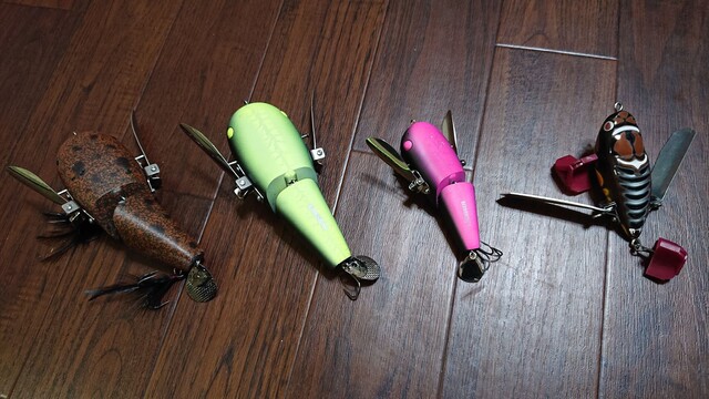 クローラー系の見た目はルアーに金属の羽根が付いていて、いかにも釣れなそ〜な感じはしますよね。だけど『 何故バスはこんなもん食べるの? 』っていつも思ってしまいます。 イメージではありますが、巻いている時の姿が、小鳥が水面をもがいているようにも見えます。バスって鳥食べるの? いや、大きな蝉? いや、大きな虫? カエル? にも見えません。一体、魚は何だと思って食べているんでしょうかね。